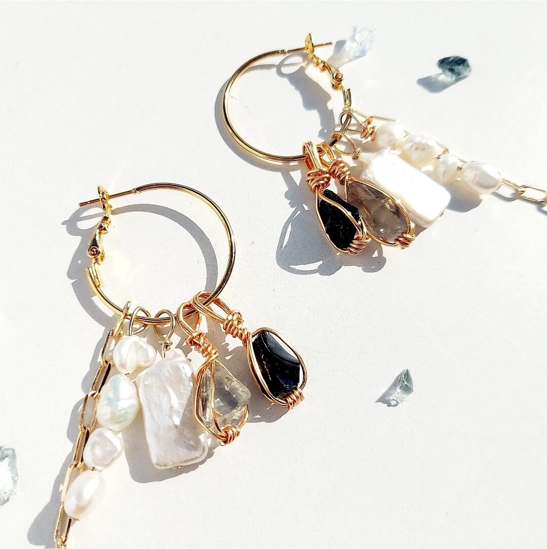 希少カラー イスタリ 「グレー」ブラックのアンダラクリスタルをスクエア淡水パールとつぶつぶ淡水パールと合わせました\( ˆ ˆ )/♡