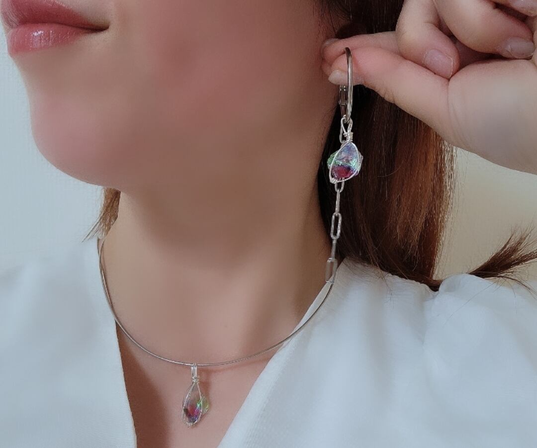 虹入り 希少 アンダラクリスタル マルチカラー ネックレストップ& ピアスイヤリングチャーム