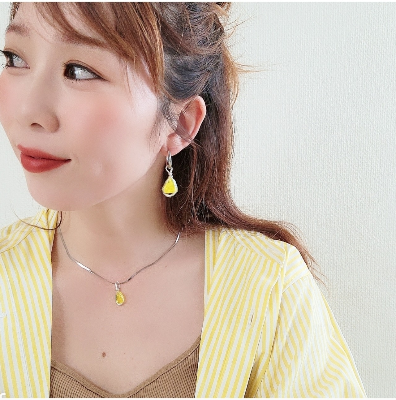 こちらはネックレストップとイヤリングやピアスに通して使えるチャームの3点セットです☆