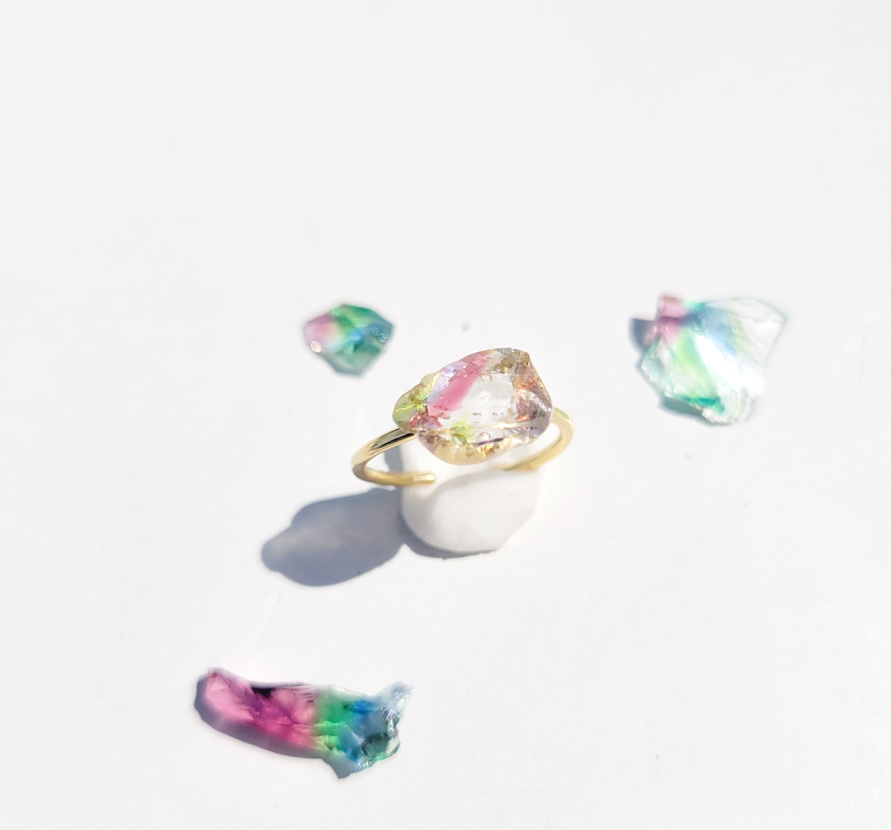 アンダラクリスタルマルチカラーを18kgpのリングにセットしましたᰔᩚ